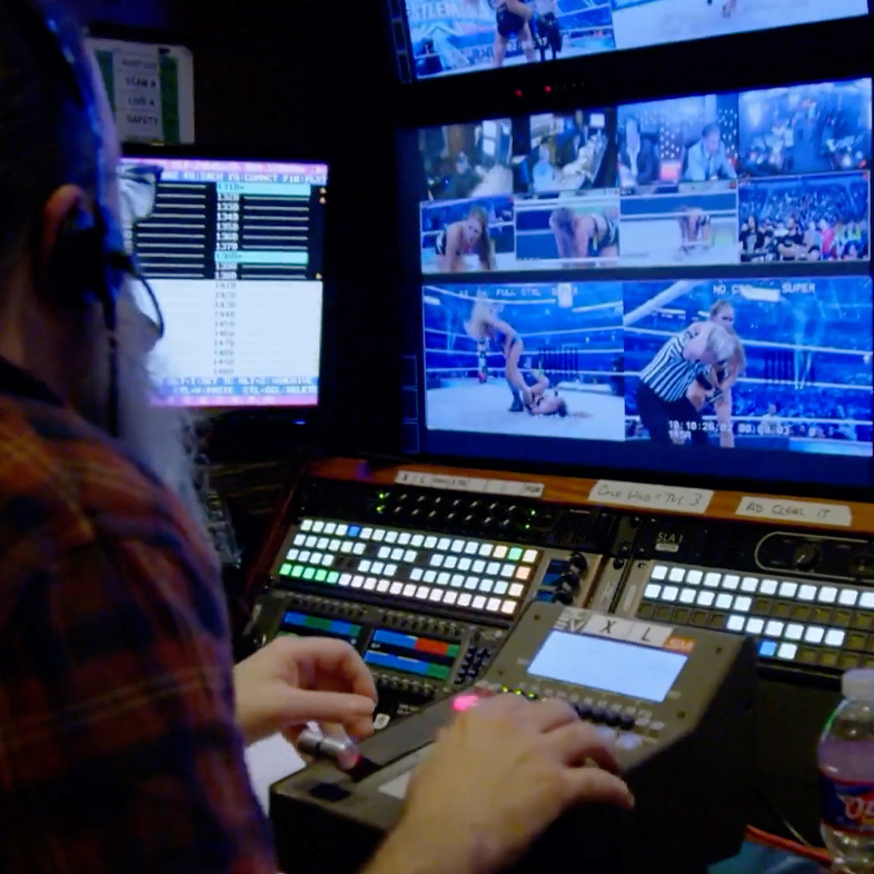 World Wrestling Entertainment (WWE) produces and broadcasts a multi-channel wrestling experience. Each week, millions of audience members watch this content on TV channels through direct on-demand links and via social media platforms. Live matches at arenas are streamed in weekly shows such as Monday Night Raw and SmackDown, along with monthly pay-per-view events like WrestleMania. Broadcast production trucks are on the road at locations on multiple continents 52 weeks a year. Scripted competitions are captured on video and streamed to studios and the corporate data center in Stamford, Connecticut, for editing and then distribution.